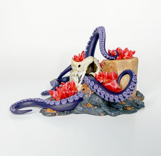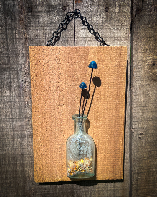 One-of-a-kind sculptures created from reclaimed bottles and bones found at Dead Horse Bay in Brooklyn. Each piece is transformed with hand-sculpted fungi, metallic textures, moss, and minerals — merging history with surreal organic growth.