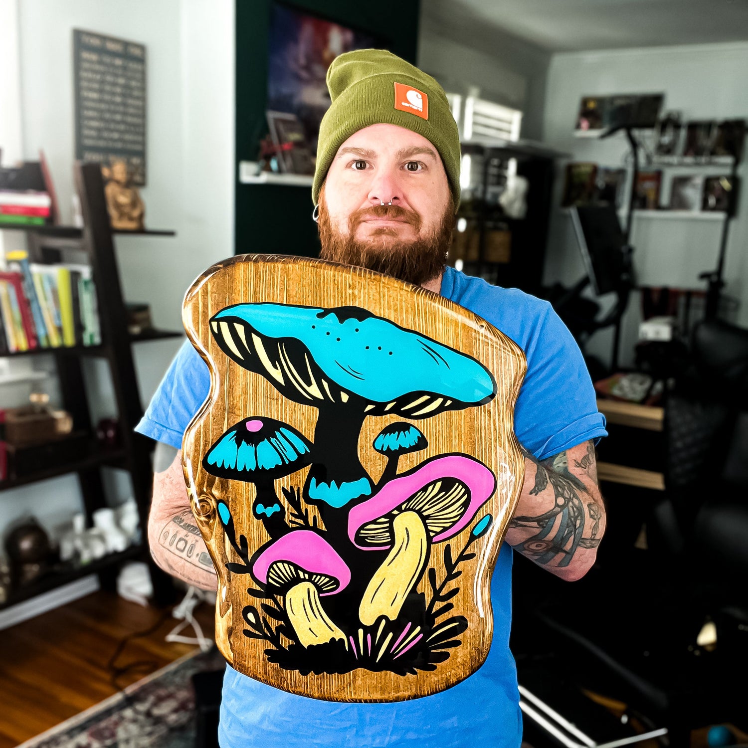 Graphic apparel, stickers, and printed goods featuring original artwork.