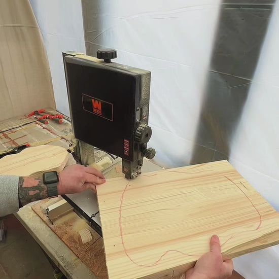 • Solid wood tabletop, hand-shaped