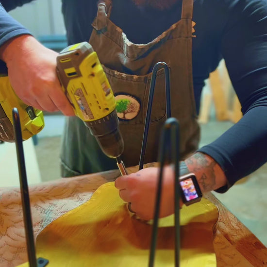 No two tables are exactly alike. Variations in wood grain, paint application, and resin flow are intentional and part of the work.